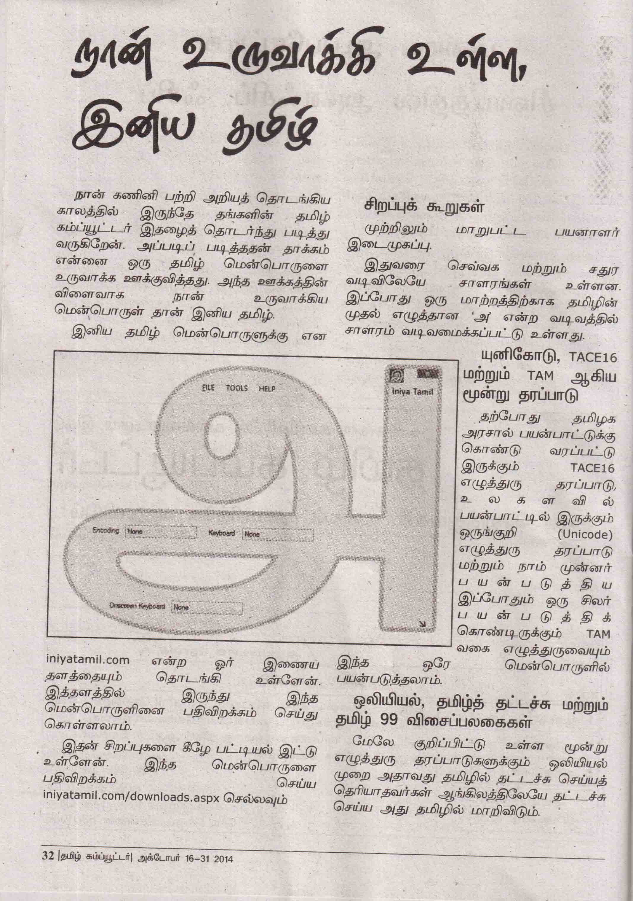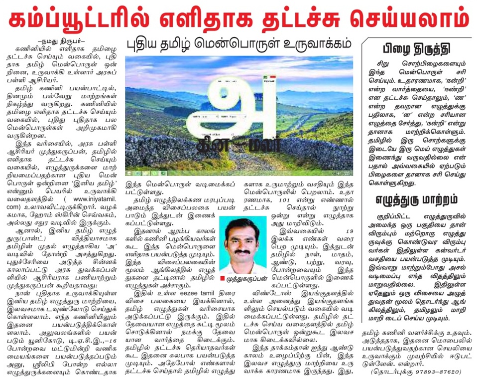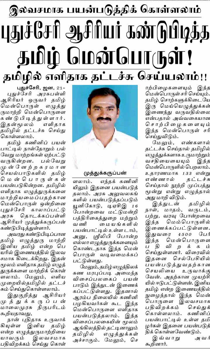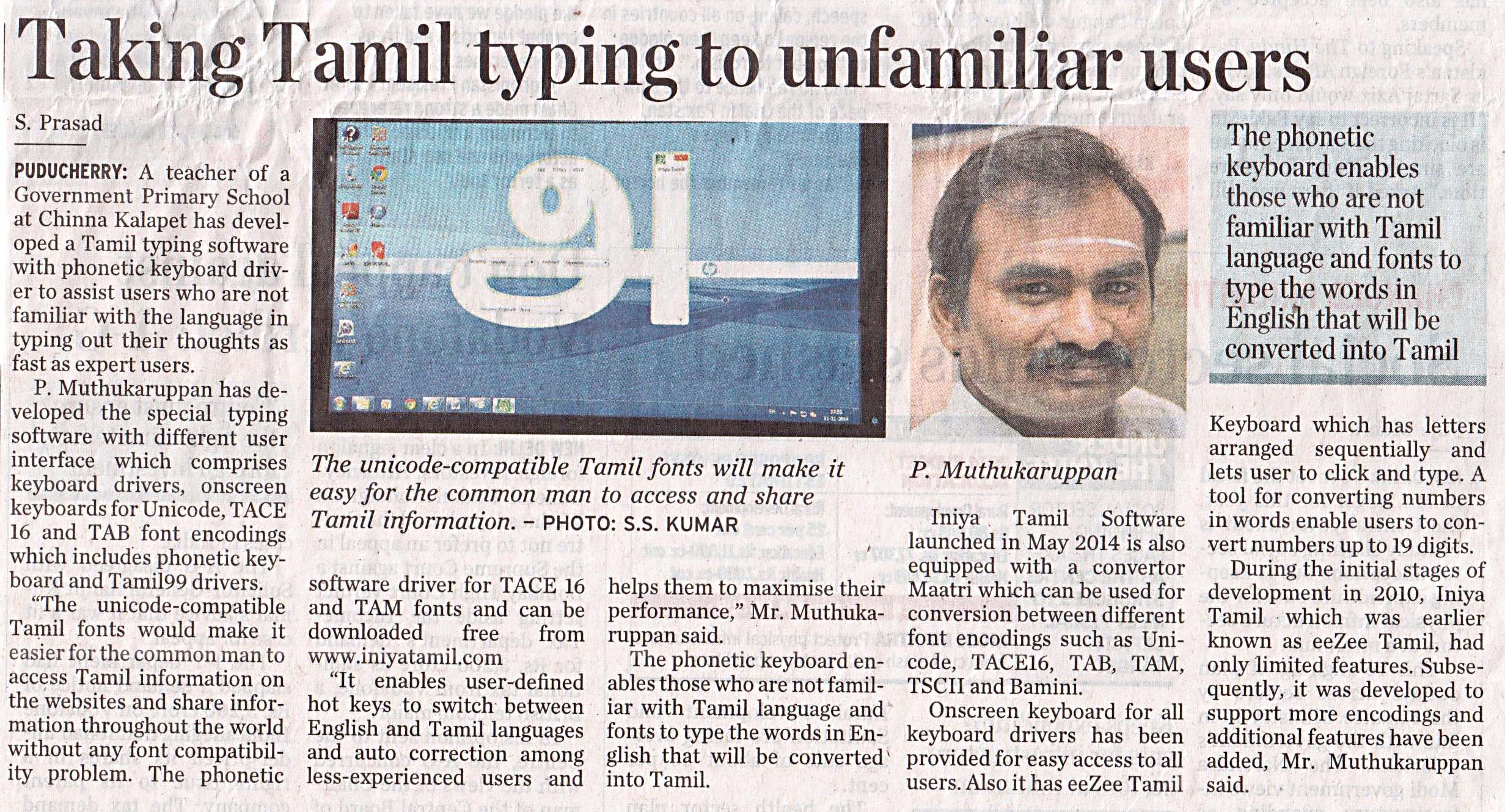 Taking Tamil Typing to unfamiliar users - The Hindu, 27